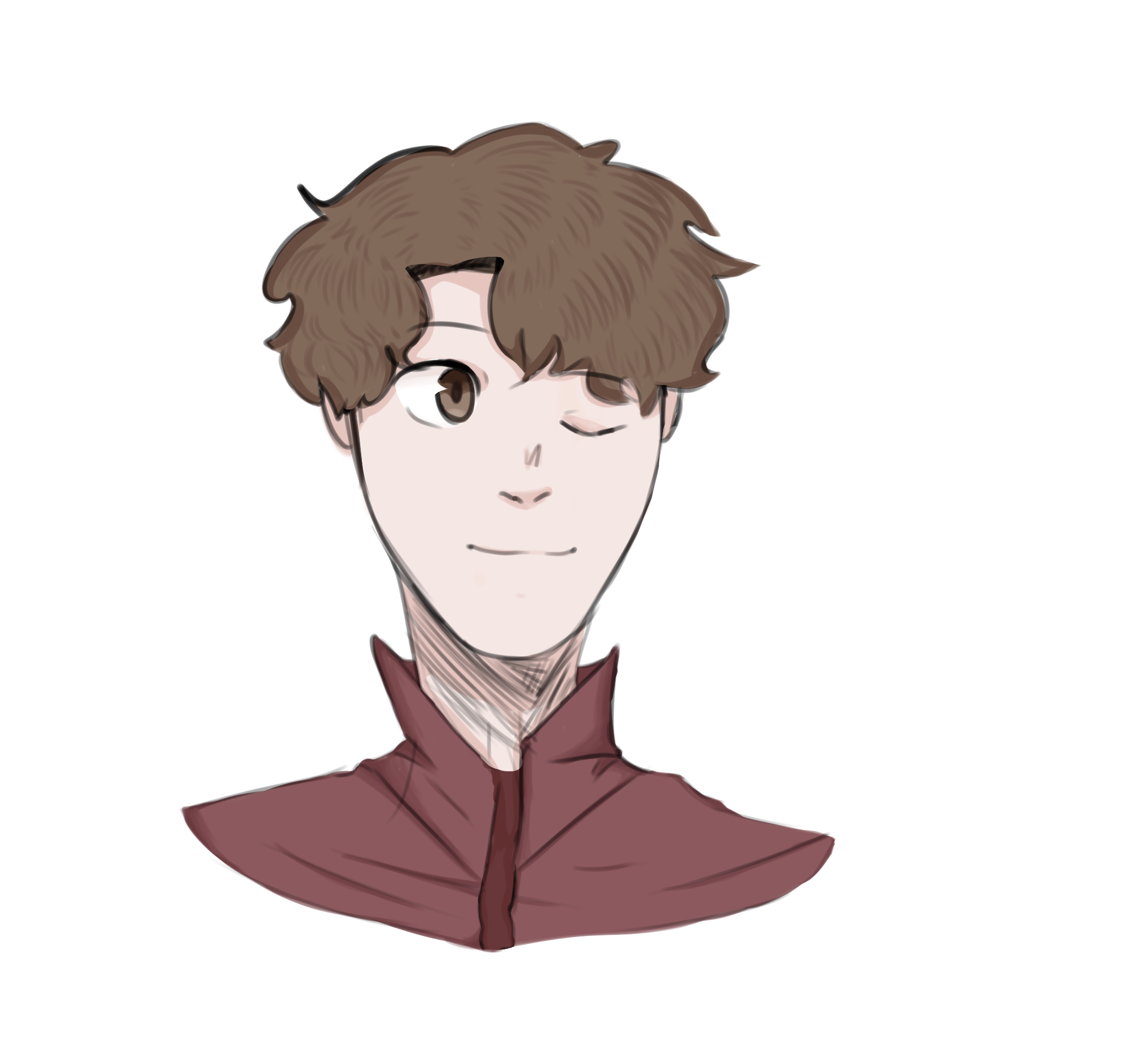 7• Un autoportrait (dessin) d'un ami de ma classe avec un fond :