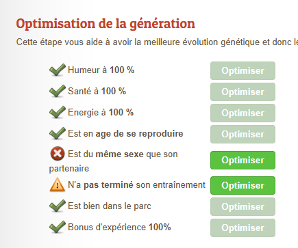 Lors d’une reproduction, une interface d’optimisation apparaît :