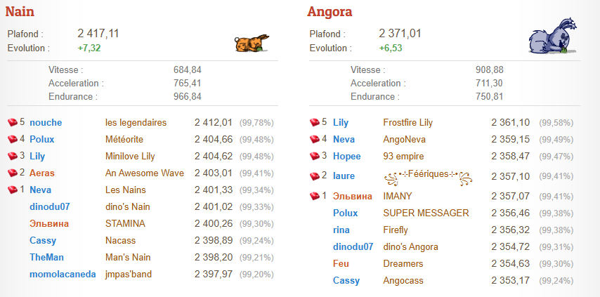 Tous les 1er et 16 du mois à 18h30, le Top Génétique récompense les cinq plus grands éleveurs de chaque race soumise à un classement (Original, Angora, Bélier, Panda, Nain).