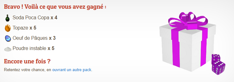 Vous remportez 5 points d'animation, 2 tickets VIP et 2 tas de nourritures !