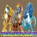 raikou,entei et suicune vert=phillali,bleu foncé=givrali,noir=noctalie,bleu clair=aquali,violet=mentali,orange=pyrolie,jaune=voltalie et marron=evolie |